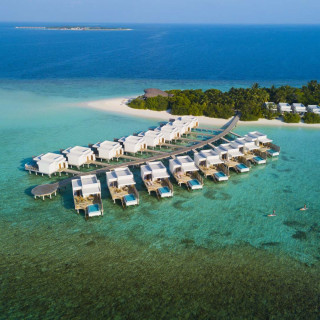 These over the water retreats offer all creature comforts that you can wish for, combined with complete privacy. These magnificent villas are also built on stilts, close to the house reef with its colourful myriad of marine life. The villa features an airy bedroom with king bed and a spacious bathroom with twin vanities and rainfall shower. The villas also include an oversized two-tiered sundeck with your whirlpool (hot tub), sunloungers and sun umbrella. Enjoy panoramic views of the Indian Ocean with a bubbly drink in hand, and your favourite tunes playing the background.