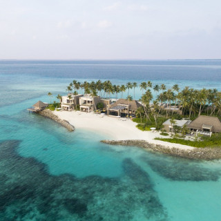 Your Maldives beach villa awaits, fringed by lush foliage and powdery white sands. Unwind on your daybed on your private sun terrace or in your freestanding terrazzo tub in your open-air bathroom at this beach resort.