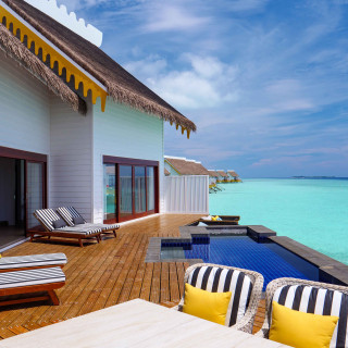 Escape to tropical indulgence. Soak up the Maldivian rays on the sundeck or step out onto your private sweep of white sandy beach. Stretch out on the circular daybed that cantilevers over the private plunge pool.