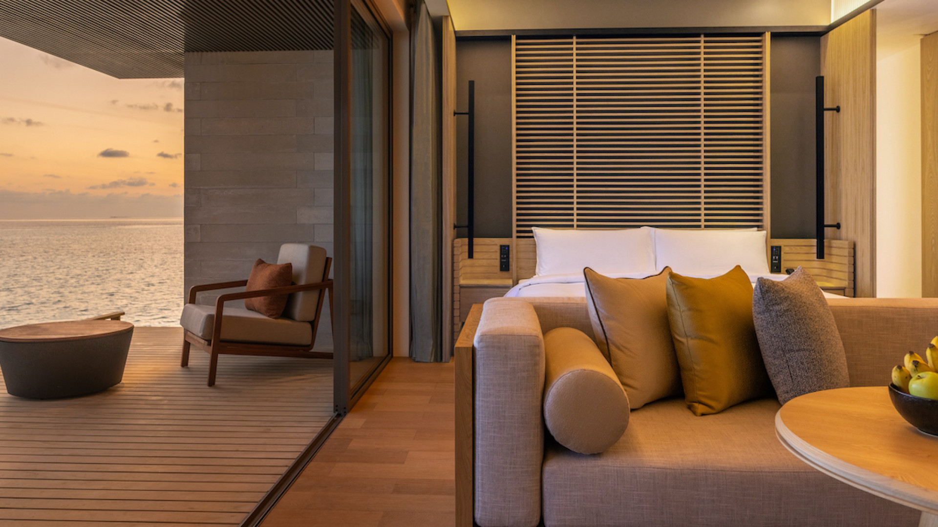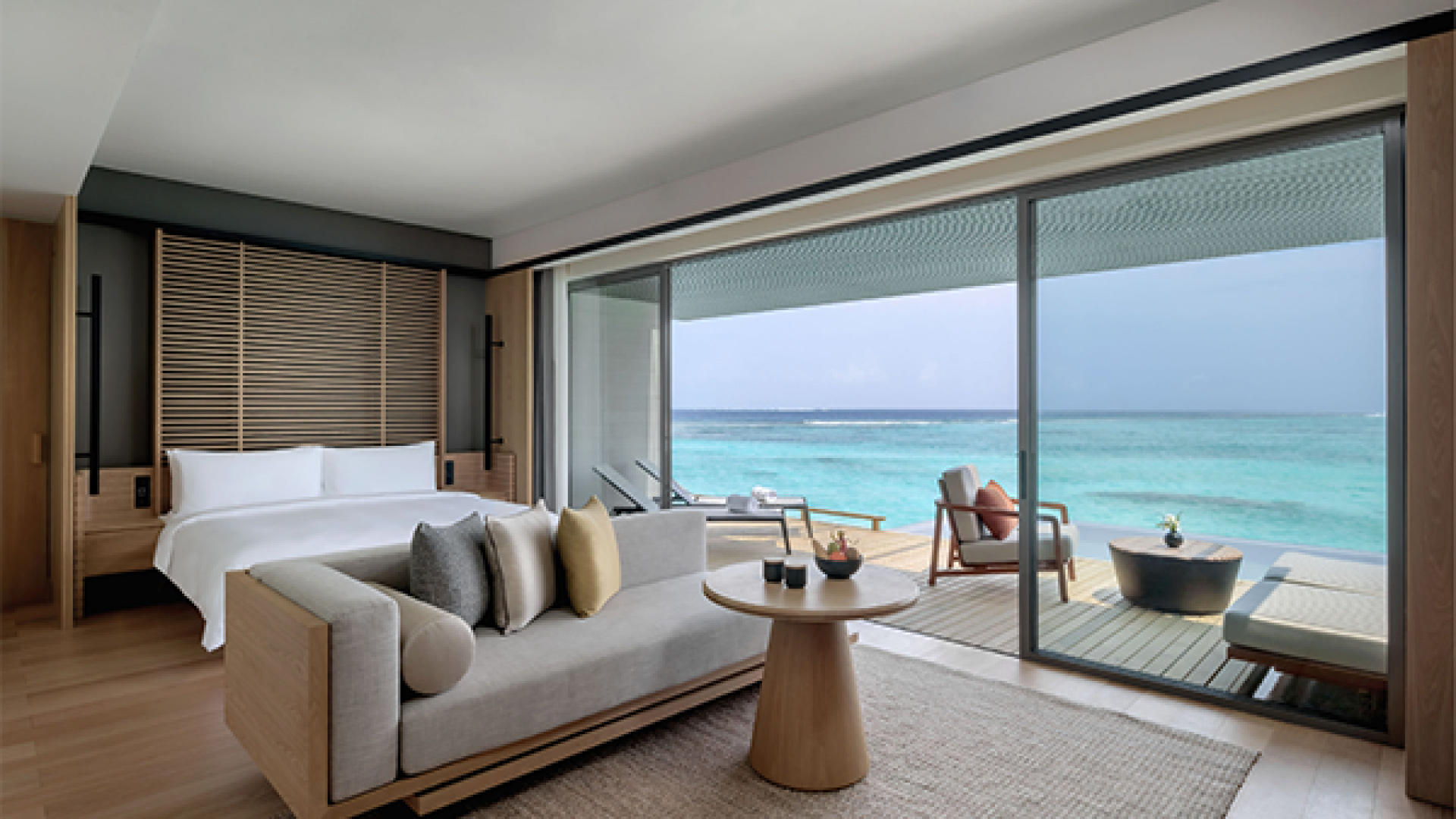 Wake up to the splendour of the sunrise while floating in luxurious comfort above the turquoise lagoon. These elegantly appointed villas feature an open-concept bedroom and living room for a spacious feel, with floor-to-ceiling glass doors that slide open to a private pool and sun deck surrounded by unending ocean views.