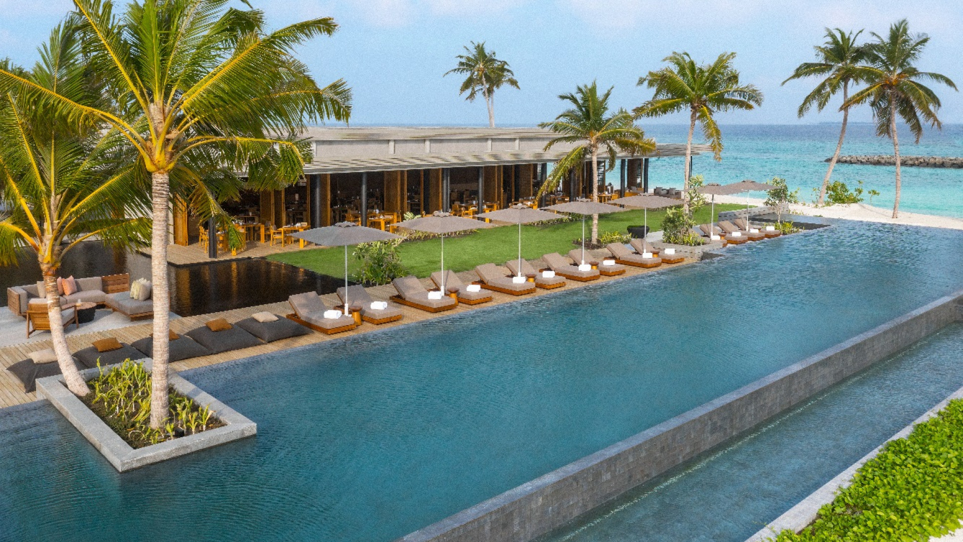 Nestled within lush greenery, steps from sun-kissed sand, these spacious villas are havens of privacy and comfort with a separate bedroom and living room. Floor-to-ceiling sliding glass doors maximise views and open to a private pool and sun deck, perfectly positioned to catch the magnificent Maldivian sunsets.
