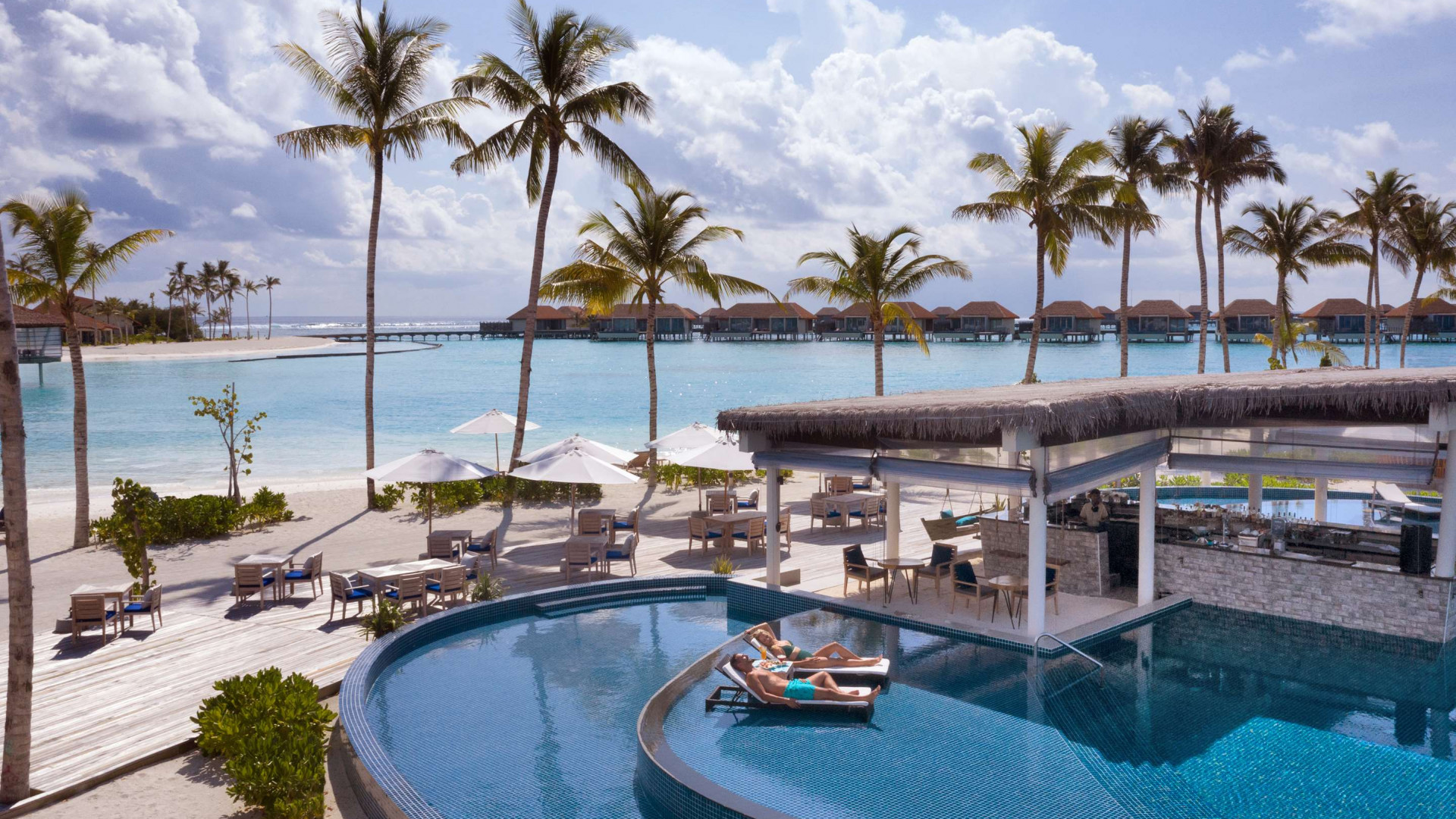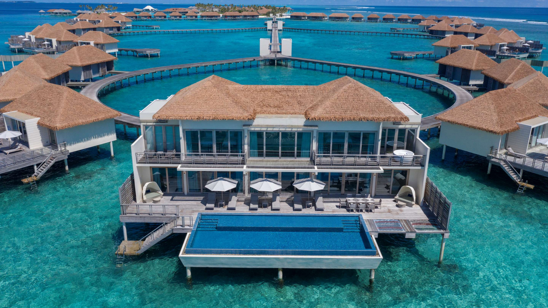 Ideal for larger groups, this overwater villa includes three separate bedrooms and a private infinity pool.